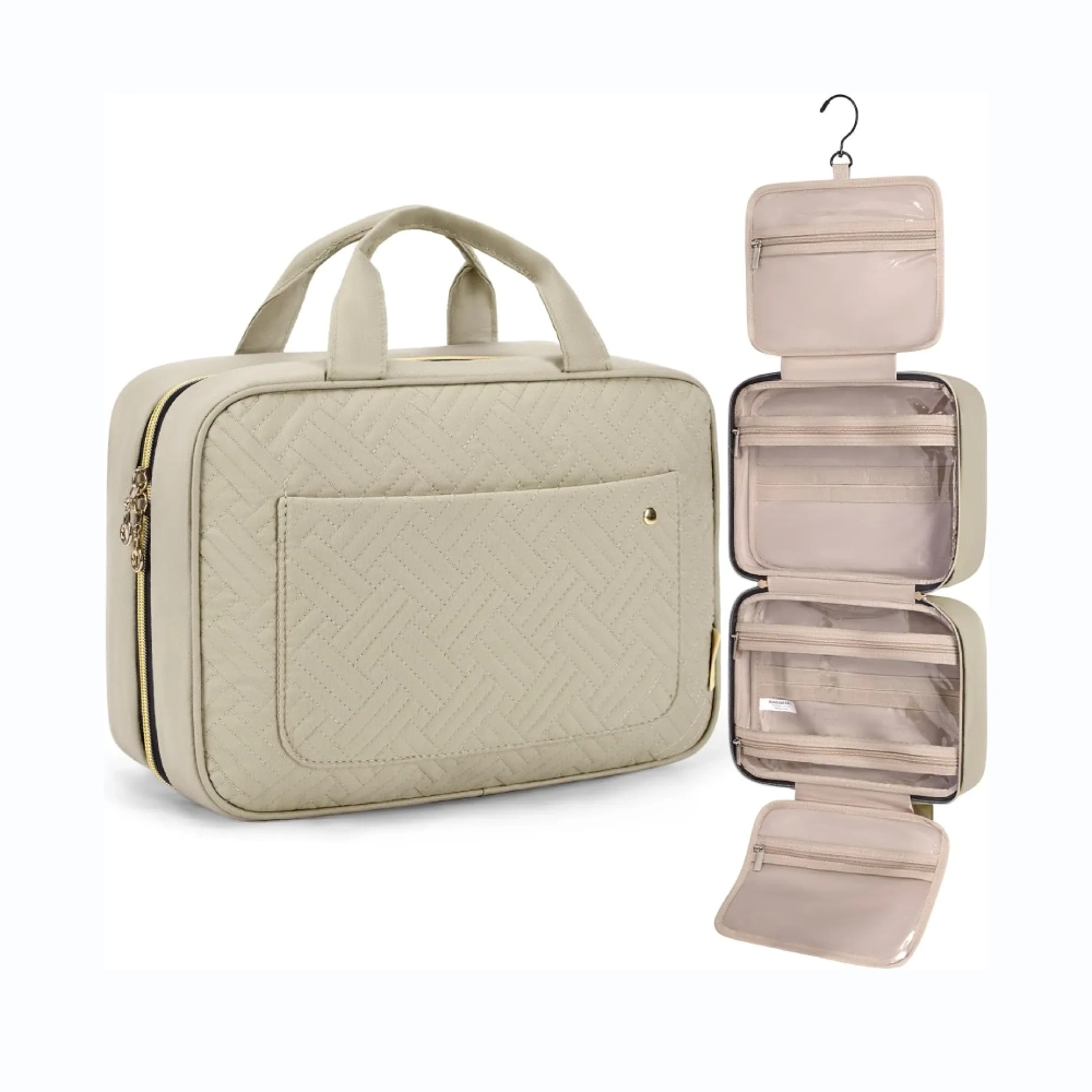 Poltsa osoa material iragazgaitzarekin estalduta dago. Zipriztinak, Isuri, edo bainugela orokorraren hezetasuna ez da iragaziko. Zure larruazala zaintzea, Kosmetika, eta eskuilak primeran lehor eta babestuta geratzen dira, horrek gehiago irauten laguntzen die.